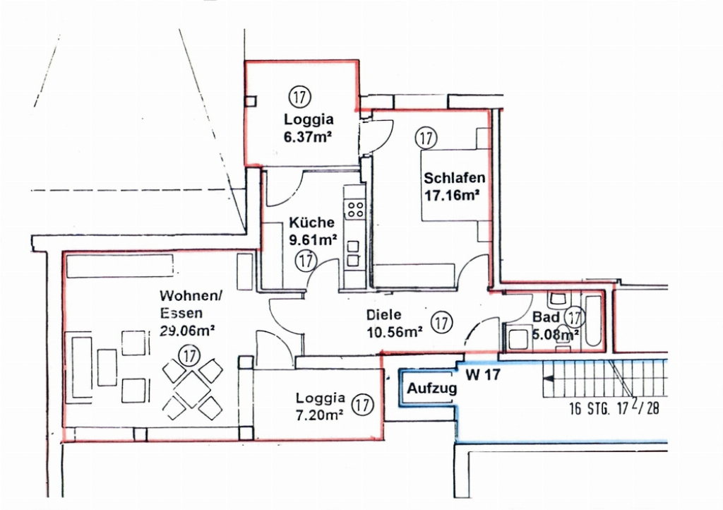 - Schlafzimmer und Küche mit Loggiazugang